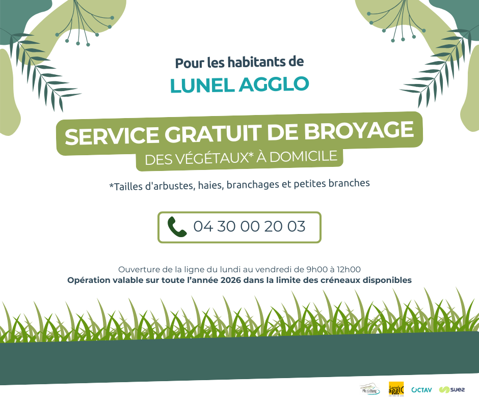 Ces sessions de broyage gratuites sont possible uniquement sur prise de rendez- vous, du lundi au vendredi de 9h à 12h au 04 30 00 20 03